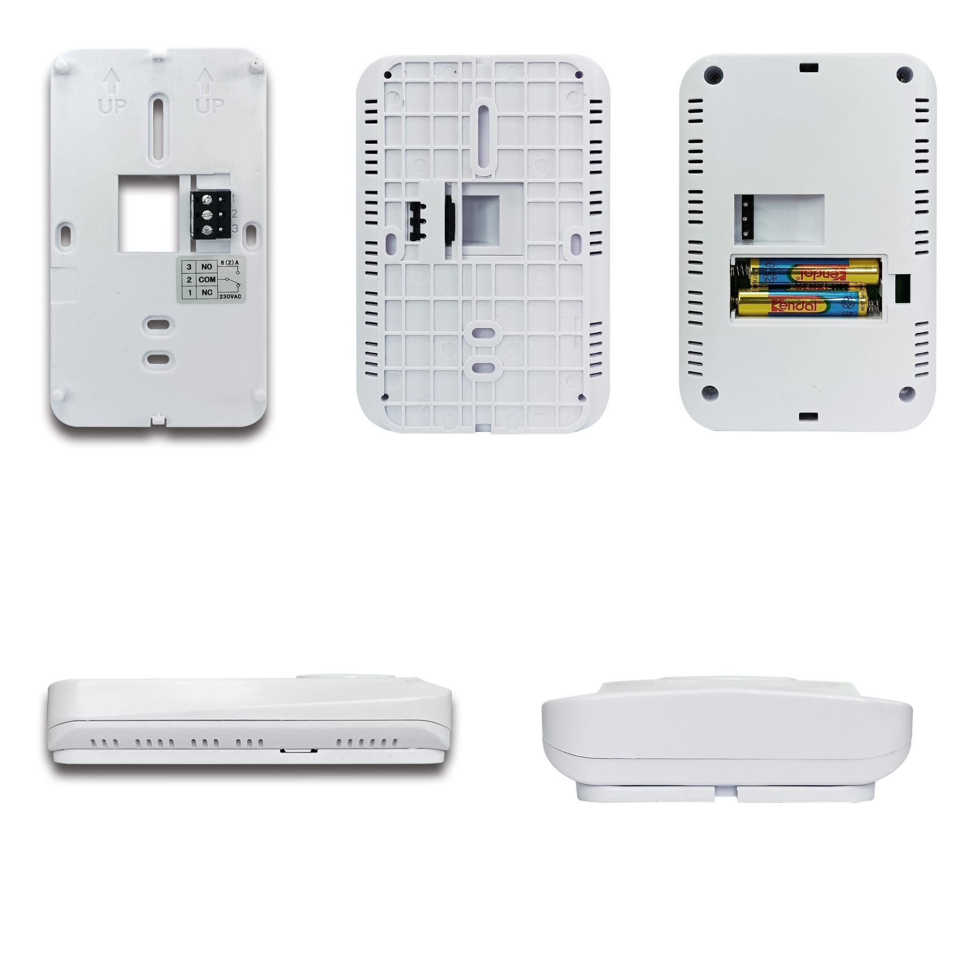 Με κομψό και σύγχρονο σχεδιασμό σε κλασικό λευκό χρώμα, αυτός ο θερμοστάτης ενσωματώνεται απρόσκοπτα σε οποιαδήποτε εσωτερική διακόσμηση, προσθέτοντας μια πινελιά πολυπλοκότητας στον χώρο ζωής ή εργασίας σας.Η οθόνη LCD παρέχει σαφείς και εύκολα αναγνωρίσιμες πληροφορίες, επιτρέποντάς σας να παρακολουθείτε τη θερμοκρασία και τις ρυθμίσεις με μια ματιά.
