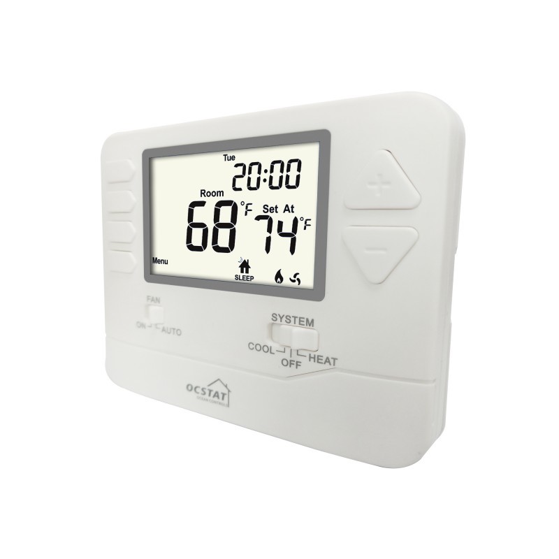 The OCSTAT STN705 Wired Room Thermostat is an advanced wired programmable thermostat designed to optimize comfort and energy efficiency in various indoor environments. Manufactured in China, this product boasts CE, FCC, and ISO certifications, ensuring high-quality standards and reliable performance. With a minimum order quantity of 500PCS and a monthly supply capacity of 2,000,000 units, the STN705 is ideal for large-scale commercial and residential HVAC projects. Its price is negotiable, making it a cost-effective solution for wholesalers and contractors.