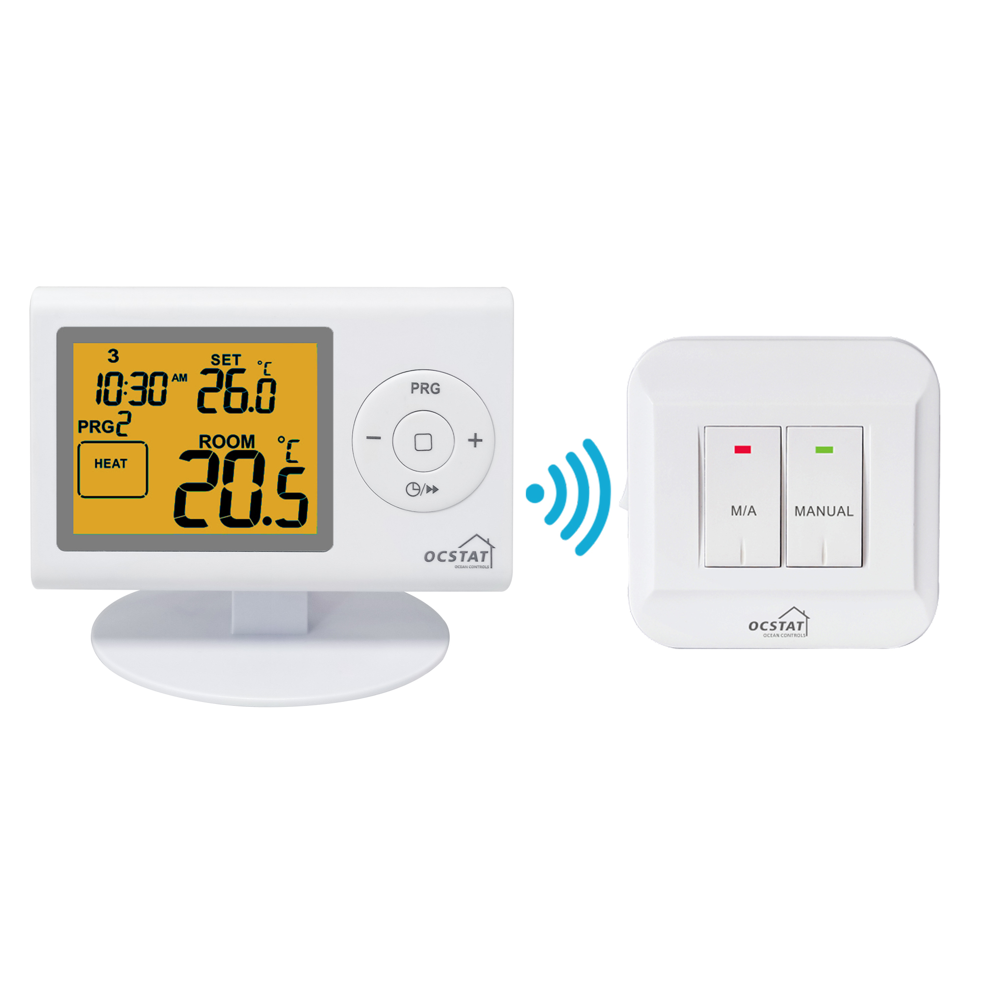 Το OCSTAT ST2402RF RF Room Thermostat είναι μια προηγμένη και αξιόπιστη λύση σχεδιασμένη για τη βελτίωση του ελέγχου της θερμοκρασίας σε διάφορα περιβάλλοντα.είναι ιδανικό για την αποτελεσματική διαχείριση των συστημάτων θέρμανσηςΗ ασύρματη συνδεσιμότητα RF (Ραδιοσυχνότητα) που λειτουργεί σε 868MHZ επιτρέπει εύκολη εγκατάσταση και ευέλικτη τοποθέτηση χωρίς την ανάγκη για περίπλοκη καλωδίωση,το οποίο το καθιστά τέλειο για οικιστικές και εμπορικές εφαρμογές.