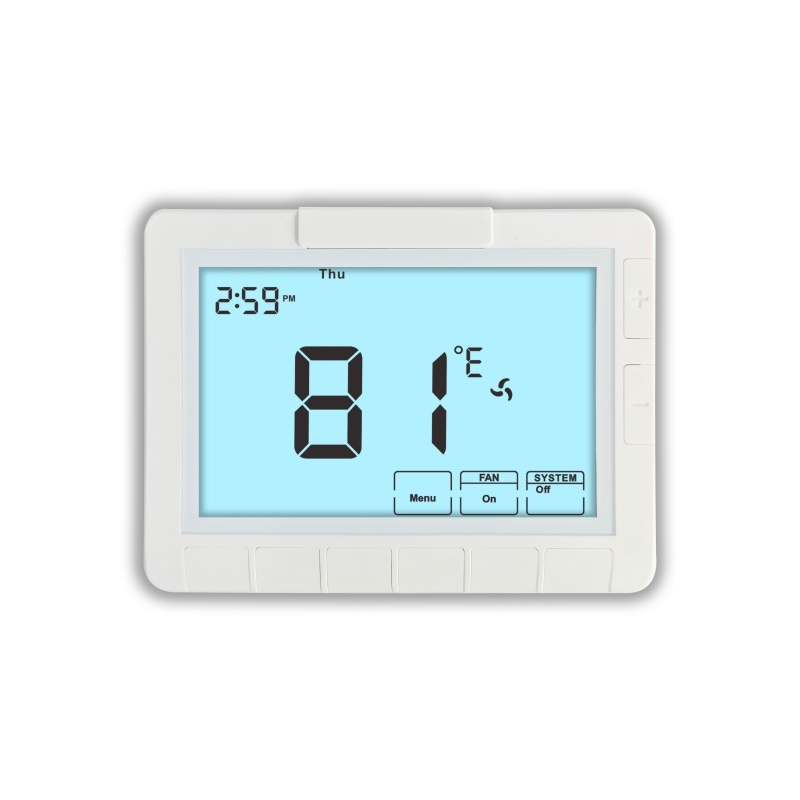 Ο θερμοστάτης HVAC μας διαθέτει πολλαπλές λειτουργίες λειτουργίας συστήματος, όπως ΘΕΡΜΑΝΣΗ, OFF και ΨΥΞΗ, μαζί με λειτουργίες λειτουργίας ανεμιστήρα AUTO και ON, παρέχοντας ευέλικτη λειτουργικότητα για οποιοδήποτε περιβάλλον. Ο θερμοστάτης διαθέτει μια καθαρή οθόνη 8,18 τετραγωνικών ιντσών και μπορεί να τροφοδοτηθεί από 2 μπαταρίες AAA αλκαλίου ή τροφοδοτικό 18~30 VAC NEC Class II, 50/60Hz.